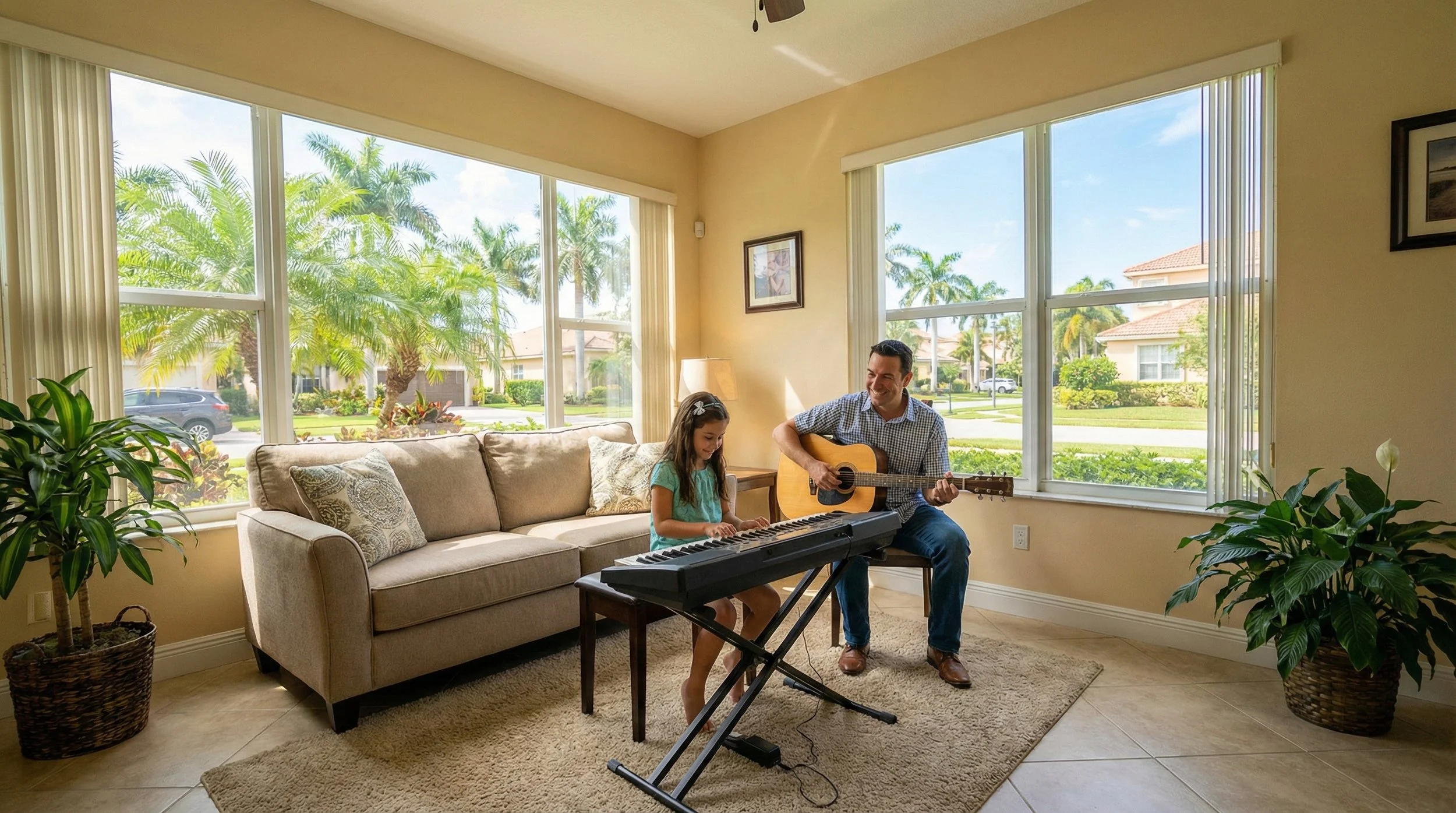 Skip the stress of travel and let our experienced guitar tutors and music coaches come to you. Bringing South Florida’s trusted music school experience right into the comfort of your home with flexible scheduling options, we make learning guitar, piano, voice, and more safe, enjoyable, and tailored to your family’s needs.